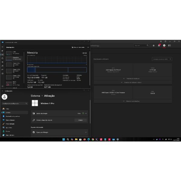 Vendo ou troco PC Gamer: Config: PLACA MÃE: MPG B550 GAMING PLUS WATER COOLER: RISEMODE 360MM PROCESSADOR: RYZEN 9 5950XT PLACA DE VIDEO/GPU: RX 7700 XT STEEL LEGEND 96GB RAM FONTE 750W XPG CORE REACTOR 5 SSD SATA 1TB 1 SSD SATA 960GB 1 SSD M.2 1TB 1 SSD M.2 256GB GABINETE: HYTE Y60 MONITOR: RISEMODE 32 POLEGADAS 2K 165HZ TECLADO + MOUSE Adaptador Bluetooth 5.3 Adaptador WiFi 5g Preço: 17500 pra venda, 18000 pra troca, aceito propostas decentes. ASSIM QUE FECHARMOS A VENDA FORMATO ELE. Chamar no WhatsApp: 95981072770